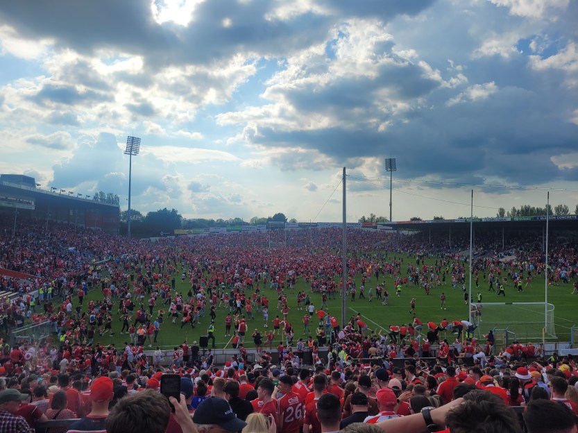 It capped a surreal eight days. The sheer emotion of the Limerick game still hadn’t quite dissolved into the ether, but here we were again, mesmerised by what we had seen, what we were seeing and, perhaps, lost for a moment in the ultimate fantasy of what we will see when our turn comes around again, eventually. This time, we didn’t join in the invasion. We stayed on our perch high up in the Town End and watched it all unfold below us.